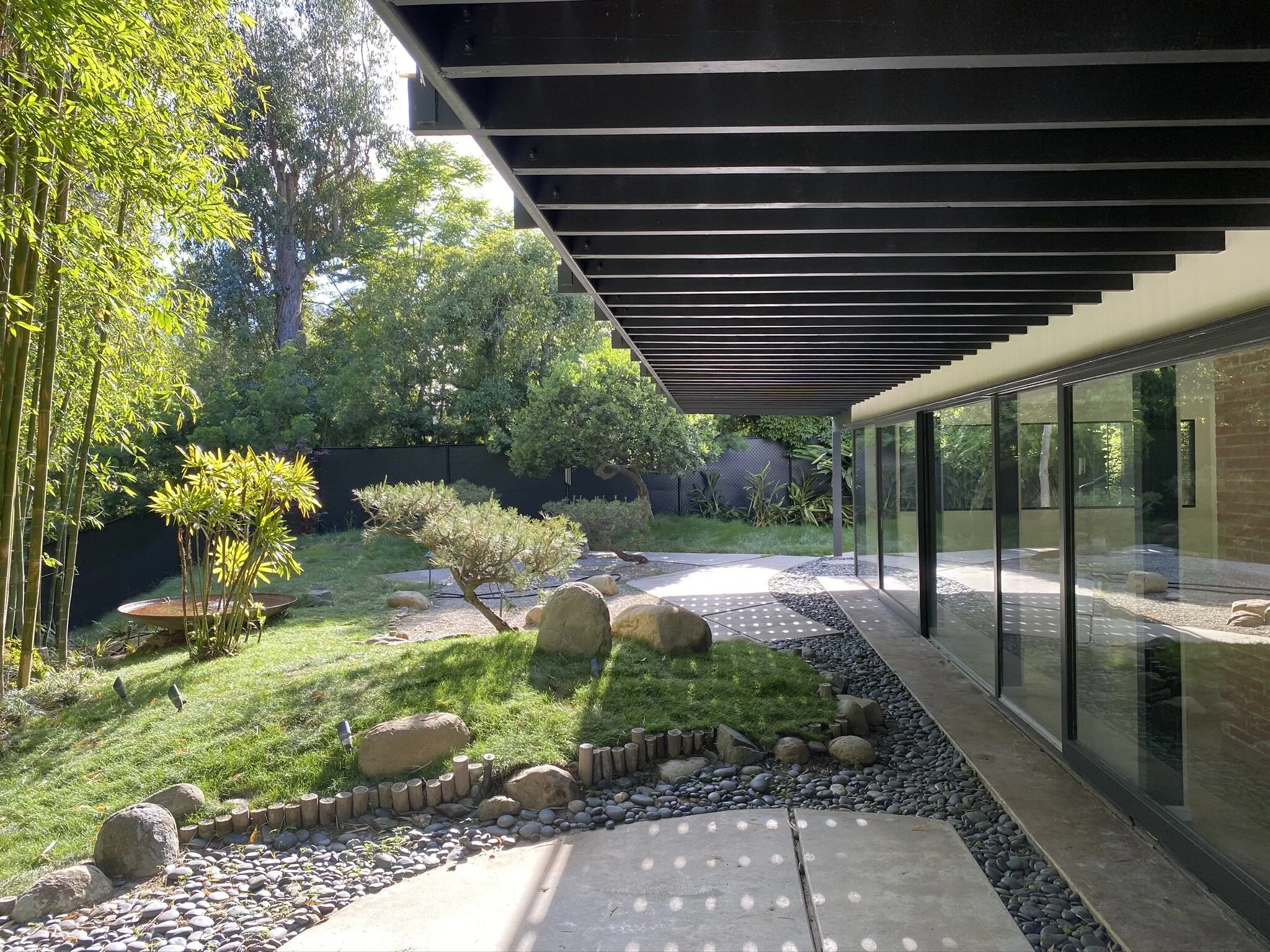 Acclaimed Landscape Architect, Garrett Eckbo, celebrated the magical hillside setting with fanciful Kandisky-esque patterns and gently rolling earth ridges